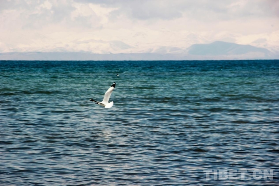 圖為棕頭鷗翱翔在位于西藏自治區(qū)阿里地區(qū)普蘭縣的瑪旁雍錯(cuò)水面上 攝影:劉莉