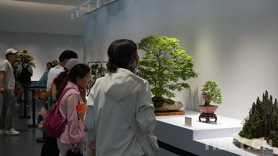 主展館內(nèi),世園會(huì)國(guó)際競(jìng)賽盆景專項(xiàng)競(jìng)賽的作品整齊陳列著,向觀眾傳遞著園林園藝美學(xué)。盆景是集園藝栽培、文學(xué)、書(shū)畫(huà)為一體的綜合造型藝術(shù),以植物、山、石、水、土等為素材,布置于咫尺盆中,縮地成寸,小中見(jiàn)大。游園人群中,兩位年輕的身影吸引了記者的注意,兩人是在成都讀書(shū)的大學(xué)生,他們表示:“來(lái)世園會(huì)增長(zhǎng)下見(jiàn)識(shí),回去之后會(huì)分享給同學(xué)們,叫他們一起來(lái)玩。”
