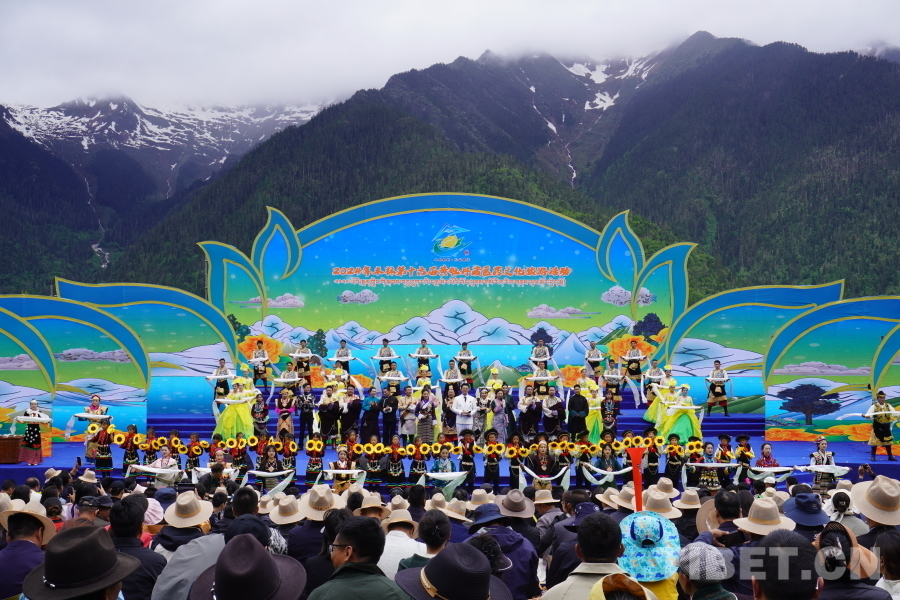 開幕式在群舞《丹旭承韻》中拉開序幕,《百鳥爭(zhēng)鳴》《圣潔米林·心之向往》《咱們西藏》《高原紅》《同心同行》等14個(gè)民俗特色歌舞依次上演,知名歌手容中爾甲、三農(nóng)主播阿佳旺姆等輪番上臺(tái),為當(dāng)?shù)厝罕姾陀慰蛶?lái)一場(chǎng)精彩的多民族特色歌舞盛宴。悠揚(yáng)婉轉(zhuǎn)的民族歌曲、多姿多彩的非遺舞蹈、耳熟能詳?shù)某绷饕魳?lè),獲得現(xiàn)場(chǎng)掌聲、歡呼聲不斷。
