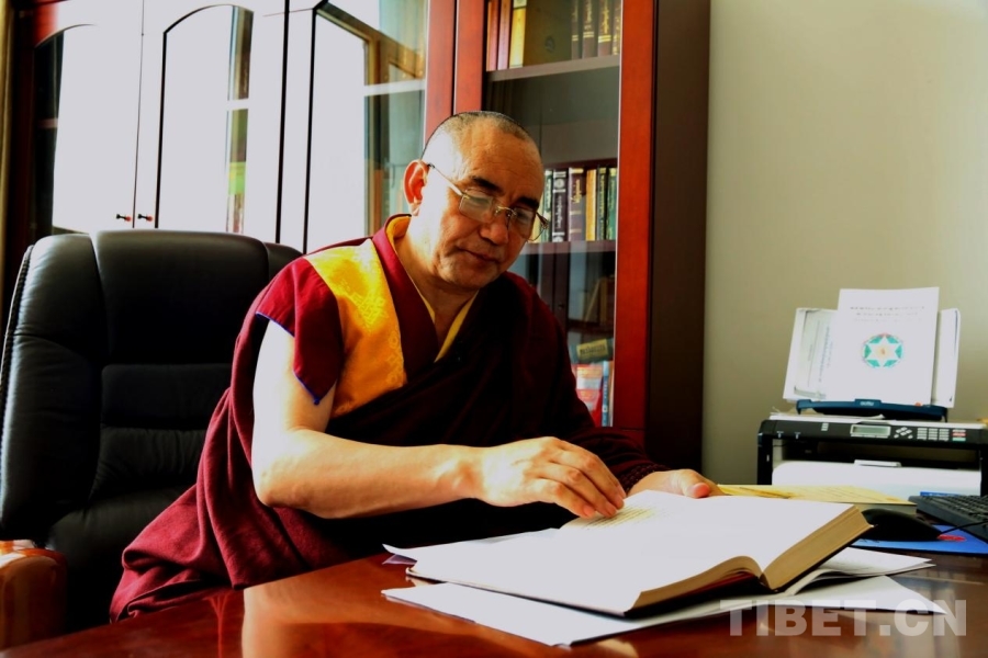 圖為青海省藏語(yǔ)系佛學(xué)院教務(wù)處副處長(zhǎng)、特級(jí)經(jīng)師悟嘉倉(cāng) 攝影:劉莉