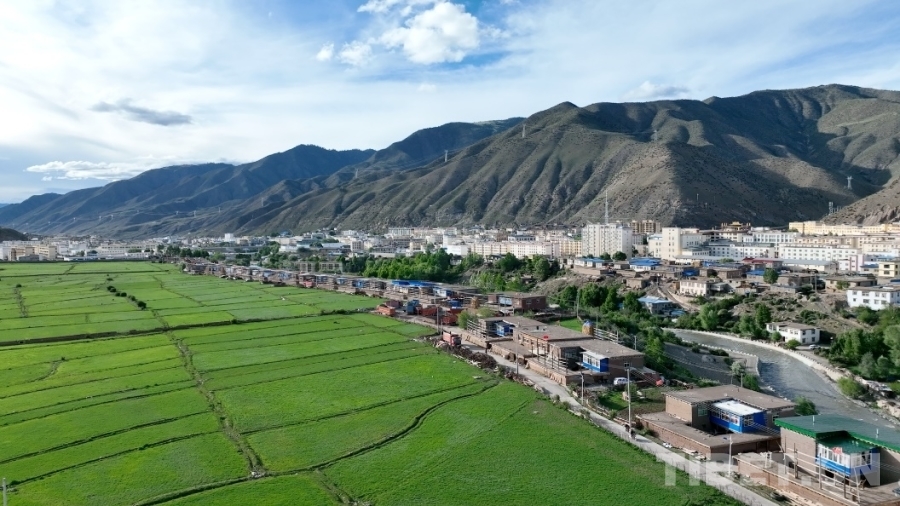 圖為洛隆縣縣城的航拍景觀