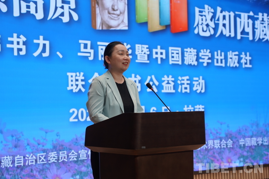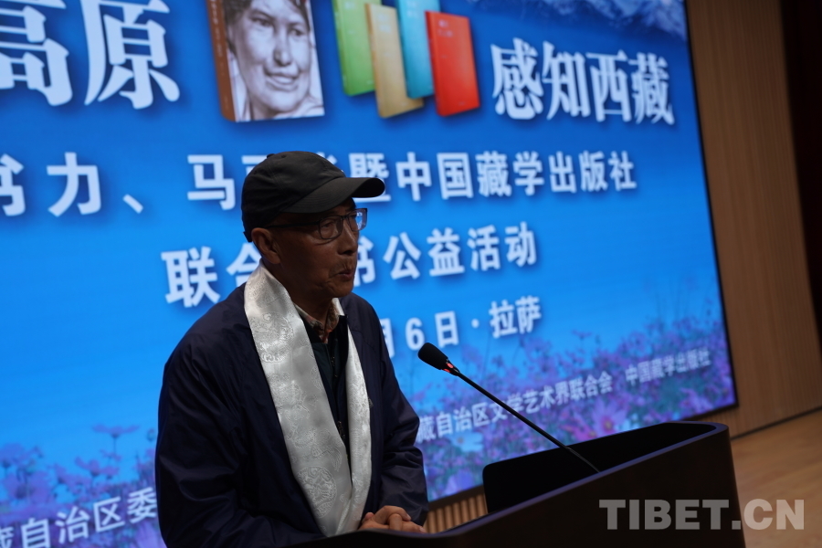 中國西藏網(wǎng)訊 6月6日上午,由西藏自治區(qū)黨委宣傳部主辦,自治區(qū)文聯(lián)、中國藏學(xué)出版社承辦的“情系高原 感知西藏——韓書力、馬麗華暨中國藏學(xué)出版社聯(lián)合贈(zèng)書公益活動(dòng)”在西藏美術(shù)館學(xué)術(shù)報(bào)告廳舉辦。自治區(qū)黨委宣傳部副部長何瑞,中國藏學(xué)出版社社長洪濤,自治區(qū)文聯(lián)黨組成員、副主席陳人杰,自治區(qū)黨委原常委、自治區(qū)政協(xié)原副主席德吉措姆,自治區(qū)文聯(lián)原主席、西藏美術(shù)家協(xié)會(huì)原主席韓書力,中國藏學(xué)出版社原總編輯、自治區(qū)文聯(lián)原副主席、西藏作家協(xié)會(huì)原副主席馬麗華等參加活動(dòng)。