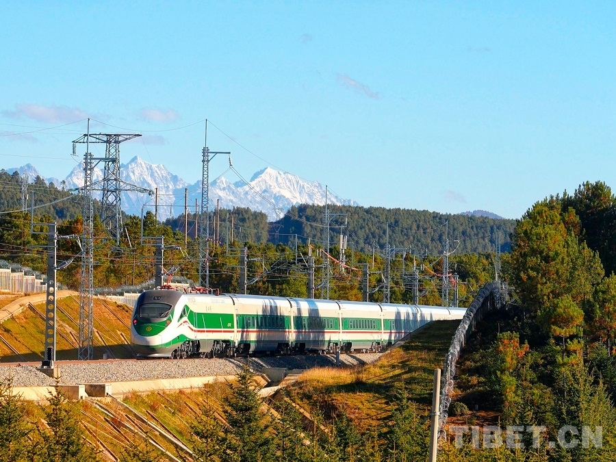 圖為復(fù)興號動車組行駛在滇藏鐵路麗香段上 迪慶日報(bào)社供圖