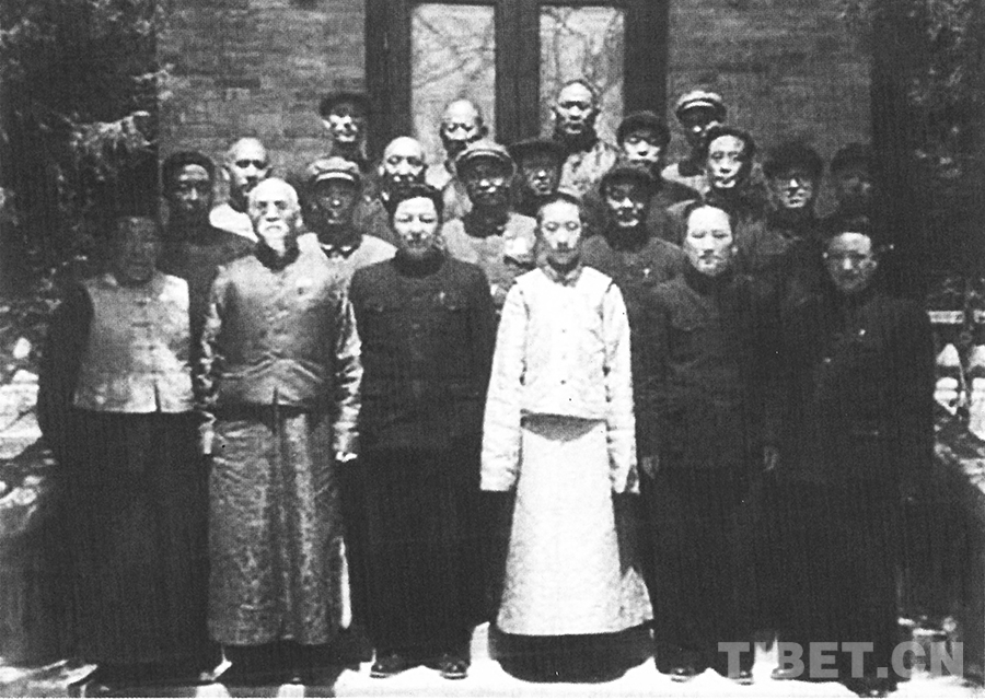 圖為習(xí)仲勛代表西北軍政委員會前來送行,期間和十世班禪、喜饒嘉措,青海省委、省政府領(lǐng)導(dǎo)及各界人士一起合影 程頤工供圖
