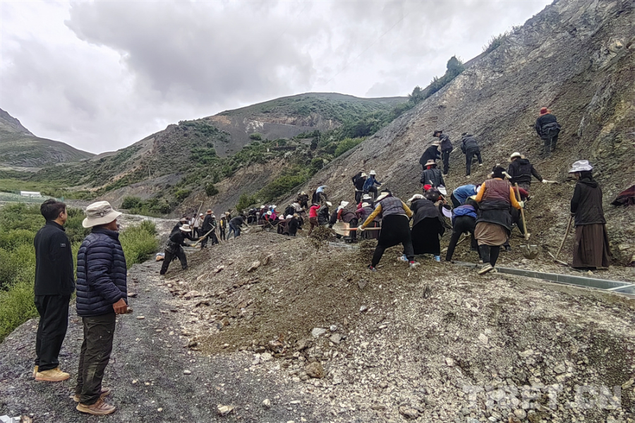 圖為洛隆縣玉西鄉(xiāng)修建鍍鋅鋼板水渠的現(xiàn)場