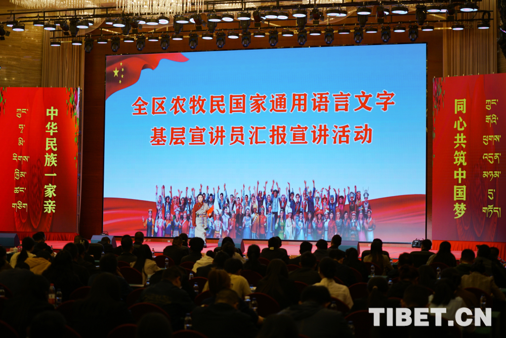 圖為西藏全區(qū)農(nóng)牧民國家通用語言文字基層宣講員匯報(bào)宣講活動(dòng)現(xiàn)場 攝影:趙振宇