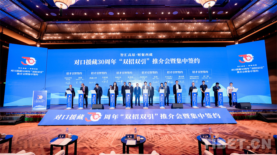 本次推介會暨集中簽約援藏招商引資項目18個、協(xié)議投資104.07億元,涉及清潔能源、特色農(nóng)牧、綠色工業(yè)、現(xiàn)代服務(wù)等各個領(lǐng)域;簽約調(diào)入、柔性引進高層次人才代表12名,涵蓋教育、高原生態(tài)、醫(yī)藥、農(nóng)牧等各個方面,將為西藏經(jīng)濟社會高質(zhì)量發(fā)展注入新的活力。