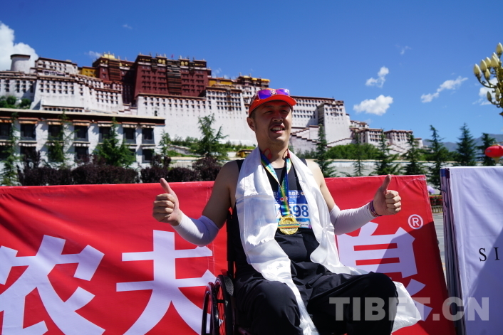布達拉宮終點處人頭攢動,工作人員為每一位完賽選手獻上哈達、掛上獎牌,和選手們一起享受拉薩半程馬拉松挑戰(zhàn)完成的滿足與快樂。來自山東濟寧的任先振是本屆拉薩半程馬拉松唯一一位輪椅半程選手,他告訴記者,這一路他不僅沒有高反,且因為是自己參加過最高海拔的半程馬拉松而更加富有激情,在拉薩他感受到了許多來自藏族同胞的關心與溫暖,來到高原前他已經報名了拉薩旅游團,他要去看看屬于雪域高原的美景。