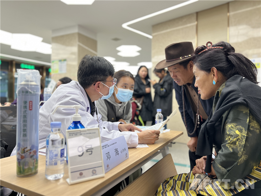 “前天從公眾號(hào)看到了區(qū)外院士專家要在拉薩免費(fèi)為市民群眾義診的消息,今天就跟愛人早早地來到這里看病。她的胃不太好,我也有些小毛病,趁此機(jī)會(huì)好好咨詢一下醫(yī)生們。我看現(xiàn)場的醫(yī)生們個(gè)個(gè)十分耐心,大病小病問得很詳細(xì),雖然我們等候時(shí)間久一點(diǎn),但很放心呀!”市民拉巴次仁說。