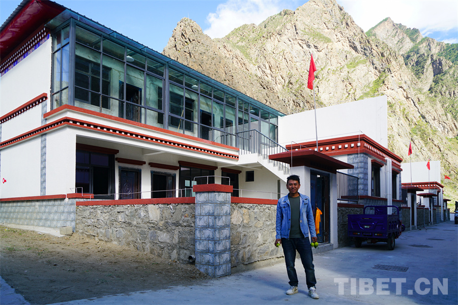 圖為邊境村東雄村村民普布次仁與自己的新房 攝影:趙振宇