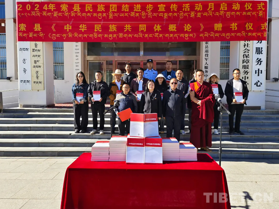 8月30日,西藏自治區(qū)那曲市索縣民族團(tuán)結(jié)進(jìn)步宣傳活動(dòng)月啟動(dòng)儀式舉行,同時(shí)開展了《中華民族共同體概論》贈書活動(dòng),全縣各族各界干部群眾代表共計(jì)100余人參加。此次啟動(dòng)儀式的舉辦,標(biāo)志著索縣民族團(tuán)結(jié)進(jìn)步宣傳活動(dòng)月正式拉開帷幕。
