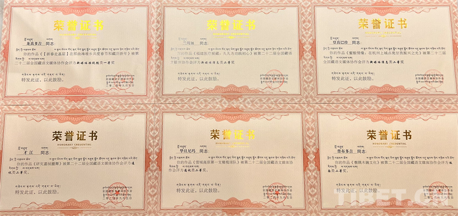 圖為中國西藏網(wǎng)獲獎作品證書 攝影:龍真多吉