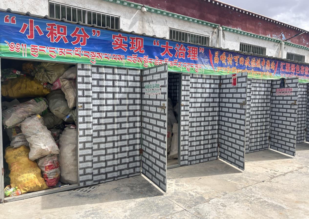積分制促進(jìn)了社區(qū)聯(lián)結(jié)和經(jīng)濟(jì)消費,還推動了鄉(xiāng)村生態(tài)的良性治理。瓊結(jié)縣加麻鄉(xiāng)昌嘎村駐村工作隊的格桑多吉展示了“五門聯(lián)排”的可回收垃圾中轉(zhuǎn)站,“這些垃圾由村委會收集起來后統(tǒng)一送去回收,回收的資金會放在‘文化銀行’中用于購買新的積分物品?!倍劣凇袄钡膩碓矗瑒t依賴“綠色銀行”對村民的激勵?!鞍▔牡碾婏堨摇⒏邏哄仯伎梢运偷酱逦瘯M(jìn)行統(tǒng)一回收?!备裆6嗉榻B說,村民將分類整理好的垃圾送至“綠色銀行”,通過“兩委”班子和村務(wù)監(jiān)督委員會委員核定之后,可以根據(jù)《綠色銀行兌換項目表》直接兌換商品用于日常生產(chǎn)生活。自“綠色銀行”推行以來,昌嘎村累計兌換商品總價值6千元,讓行動變積分、積分變商品,充分調(diào)動了群眾參與鄉(xiāng)村生態(tài)建設(shè)的積極性。