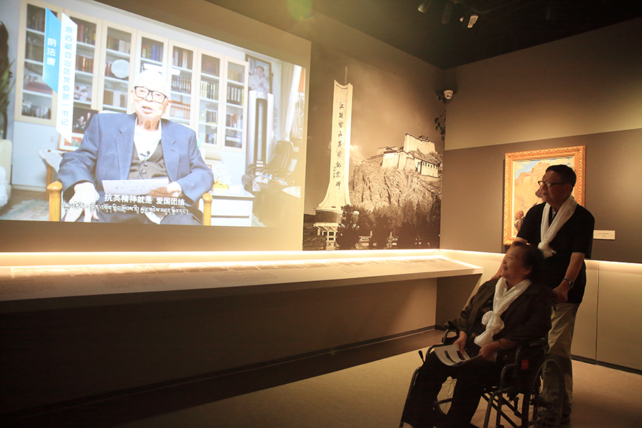 中國(guó)西藏網(wǎng)訊 9月3日,首批進(jìn)軍西藏的女兵、92歲高齡的李國(guó)柱老人,在家人陪同下,來(lái)到中國(guó)藏學(xué)研究中心西藏文化博物館,參觀“宗山號(hào)角——紀(jì)念西藏江孜抗英保衛(wèi)戰(zhàn)120周年主題展”。