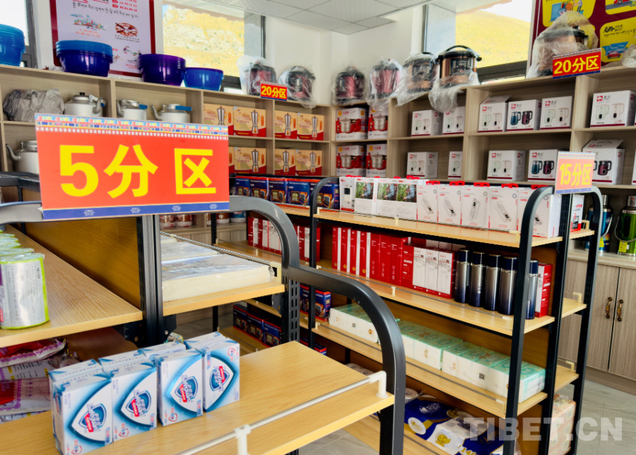 一進(jìn)入積分兌換超市,貨架上琳瑯滿目的商品吸引了記者的目光,貨架主要分為5分區(qū)、10分區(qū)、15分區(qū)和20分區(qū)。在5分區(qū)可以兌換到作業(yè)本、香皂、濕巾,10分區(qū)可以兌換到家庭裝的洗潔精和洗衣粉以及電源插排,15分區(qū)可以兌換到移動電源、多功能探照燈、保溫杯和大包衛(wèi)生紙。想要兌換市場價(jià)上百元的電飯煲、高壓鍋、酥油打茶機(jī)也不是難事,只需要20積分,就可以輕松兌換。