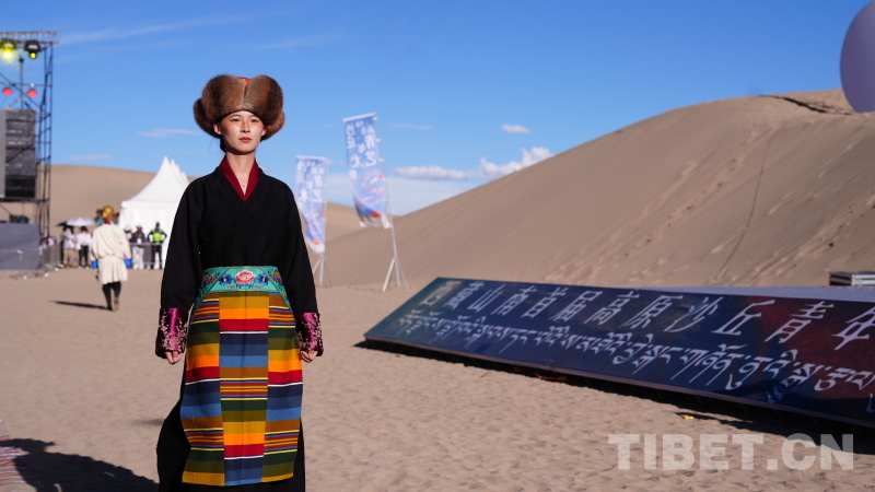 服裝大秀環(huán)節(jié),措美縣“扎扎服飾”、浪卡子縣“羊卓服飾”、隆子縣“珞巴服飾”、錯那縣“門巴服飾”等山南各縣區(qū)代表性服飾,在沙漠的舞臺上綻放異彩,既保留了民族風(fēng)情,又增添了青春與時尚的元素。模特們身著華服,在沙漠中穿梭,仿佛帶領(lǐng)觀眾穿越時空,感受了一場跨越千年的文化之旅。