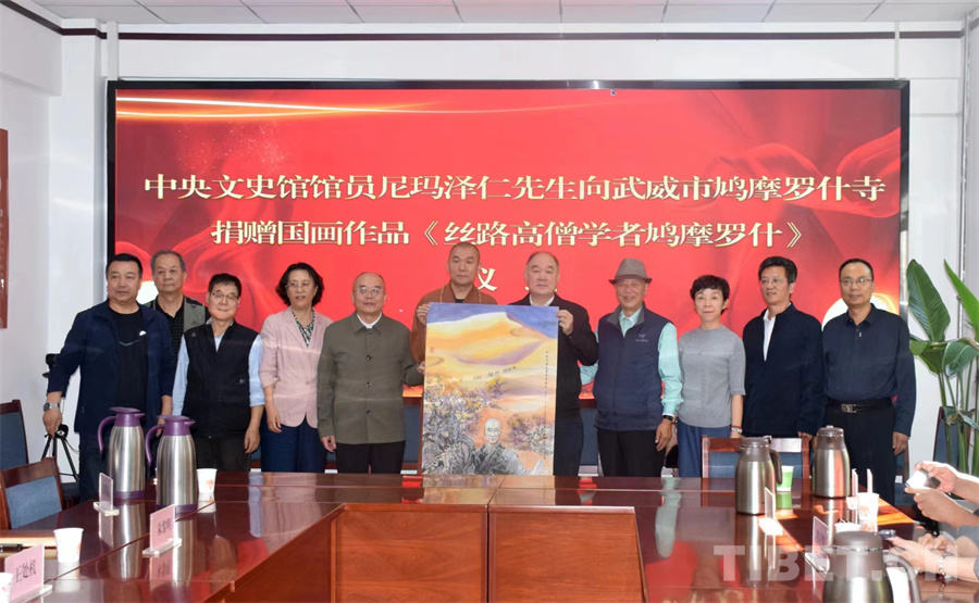 中國西藏網(wǎng)訊 9月23日,甘肅省武威市鳩摩羅什寺在蘭州舉辦《絲路高僧學者鳩摩羅什》國畫作品捐贈儀式,該作品由著名藏族畫家尼瑪澤仁捐贈。