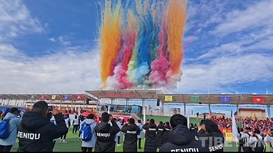 中國西藏網(wǎng)訊 9月26日,在慶祝新中國75周年華誕之際,以“七十五載逢盛世 全民健身共筑體育強(qiáng)國夢”為主題的2024年那曲市“體彩杯”足球比賽在西藏自治區(qū)那曲市全民健身活動(dòng)場開幕。