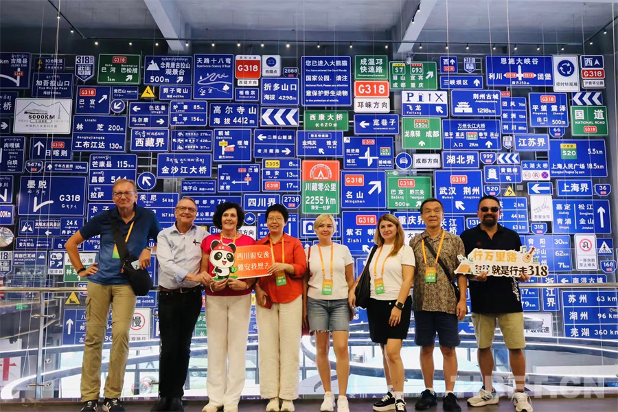 圖為國(guó)際旅行商代表團(tuán)在318微型博物館內(nèi)參觀打卡