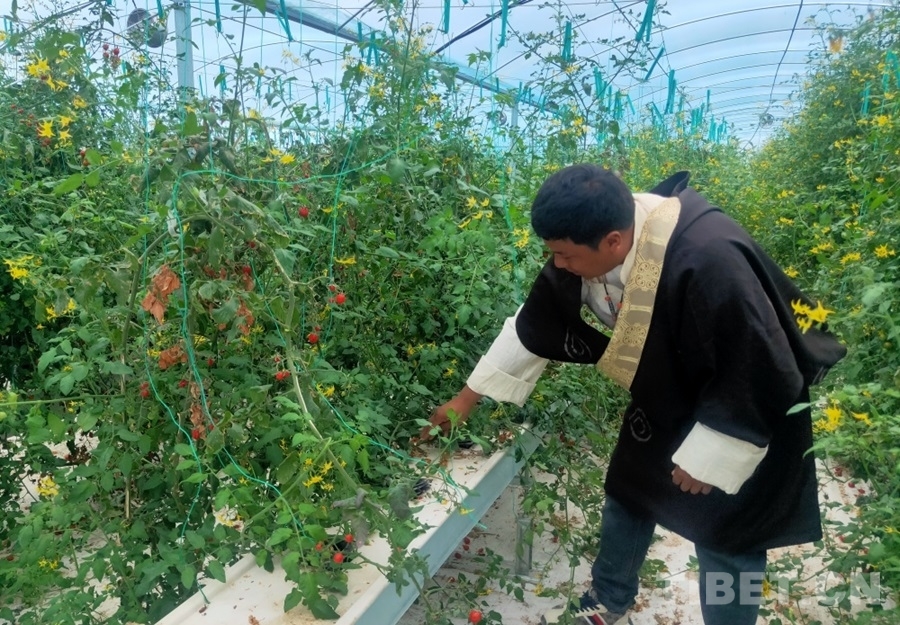 中國西藏網(wǎng)訊 “我今年34歲,是村里的大學(xué)生,從去年開始在這里工作。”江永澤仁來自昌都市八宿縣旺比村,是八宿縣物聯(lián)網(wǎng)高效植物工廠的生產(chǎn)管理員?!拔覀兩a(chǎn)的圣女果主要在縣里銷售,收益很好。這邊固定員工有三位大學(xué)生和兩位旺比村村民。果子采摘的時候,忙不過來,我們還需要再多找些村民來幫忙,每天能給到160元的工資?!闭勂鹱约核诘闹参锕S,江永澤仁語氣中的滿意和驕傲溢于言表?!懊髂晡覀冞€要計(jì)劃種植藍(lán)莓呢,已經(jīng)有同事到山南去參加相關(guān)培訓(xùn)了。”