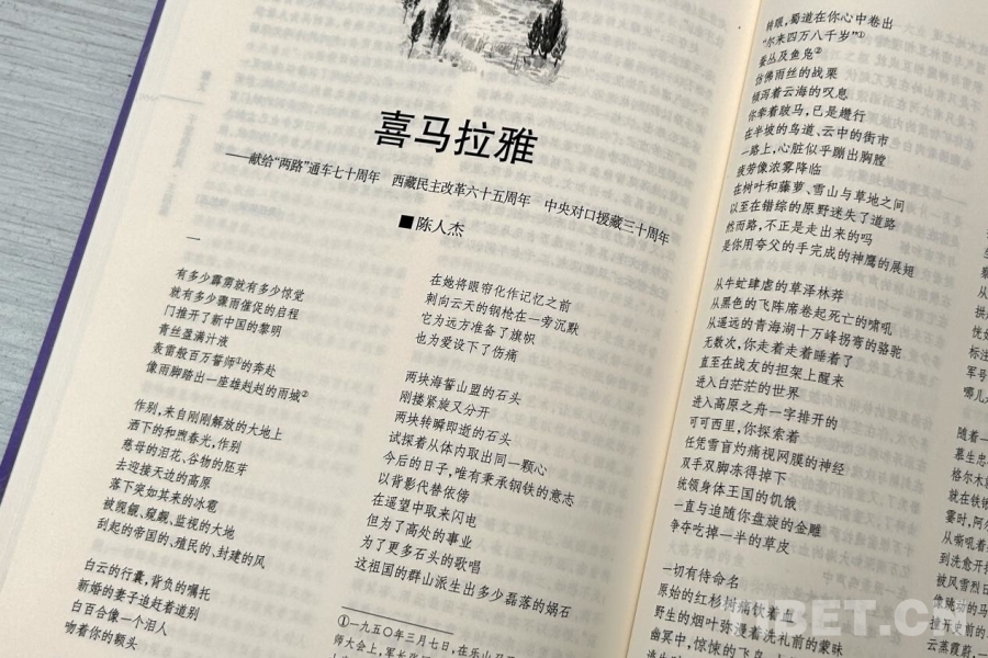 從地理喜馬拉雅到“千行詩”《喜馬拉雅》,第八屆魯迅文學(xué)獎(jiǎng)獲得者、西藏自治區(qū)文聯(lián)副主席,同時(shí)也是本詩創(chuàng)作者陳人杰感慨萬千。創(chuàng)作這首凝練了“兩路”通車70周年、西藏民主改革65周年、中央對(duì)口援藏30周年歷史性事件,涵蓋了西藏前世今生到新時(shí)代西藏變化的長(zhǎng)詩,并非易事。歷經(jīng)文思淤堵、無從下筆,到靈光乍現(xiàn)、一氣呵成,陳人杰表示:“《喜馬拉雅》的出爐,是天時(shí)地利人和,是新時(shí)代新征程的使然,是西藏的饋贈(zèng),是眾水般心靈澄澈的力量匯聚起的浩蕩的贊歌。”