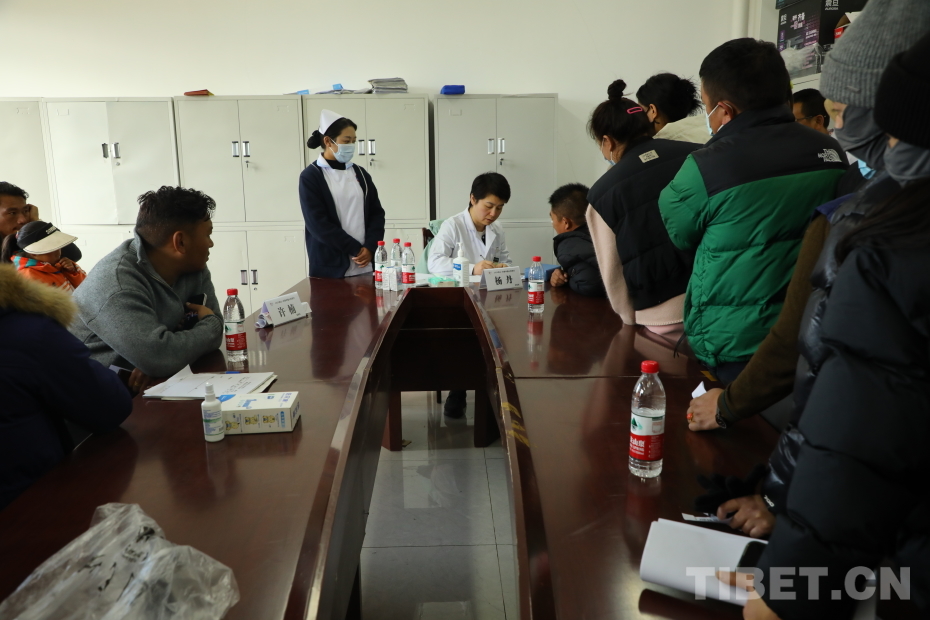 圖為協(xié)和醫(yī)院的醫(yī)生們正在為當(dāng)?shù)匕傩湛丛\ 攝影:莫干措