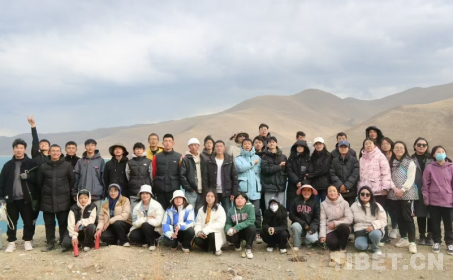 圖為張艾平帶領(lǐng)學生在羊卓雍錯研學