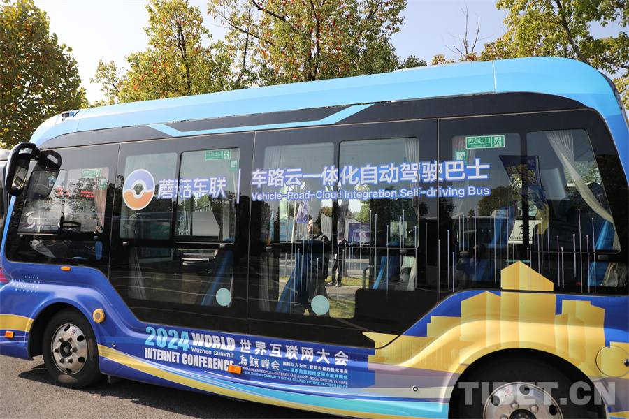 圖為車路云一體化自動(dòng)駕駛巴士,這也是該巴士首次應(yīng)用亮相世界互聯(lián)網(wǎng)大會(huì)烏鎮(zhèn)峰會(huì),在既定路線里該巴士可以自動(dòng)駕駛和規(guī)避行人車輛 攝影:王妍丹