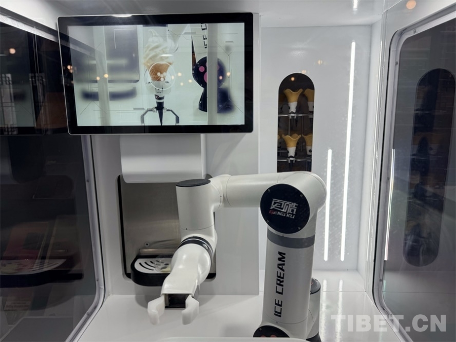 圖為機(jī)器人冰淇淋,通過掃碼支付可以在幾十秒內(nèi)獲得一個(gè)完整的冰淇淋 攝影:王妍丹