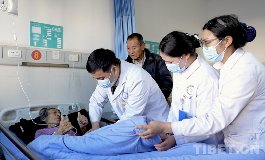 12月1日,若爾蓋縣人民醫(yī)院內(nèi),值班外科醫(yī)生仁青奪機(jī)正為一名患有膽囊結(jié)石的住院病人進(jìn)行常規(guī)病情摸查。談及就醫(yī)現(xiàn)狀,病人家屬澤讓甲很是感激:“很感謝這里的醫(yī)生,他們醫(yī)術(shù)很好,也很積極地進(jìn)行治療,而且現(xiàn)在我們也不用長(zhǎng)途跋涉地去看病了,很方便?!?nbsp;