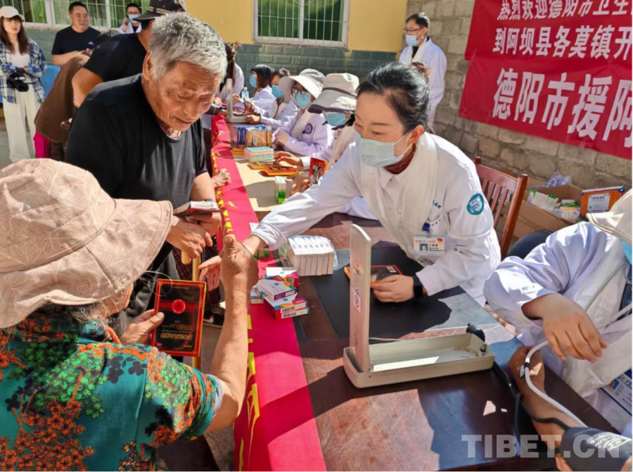 圖為德陽(yáng)援藏醫(yī)療隊(duì)員和若爾蓋當(dāng)?shù)厝罕姾嫌啊∈茉L(fǎng)者供圖