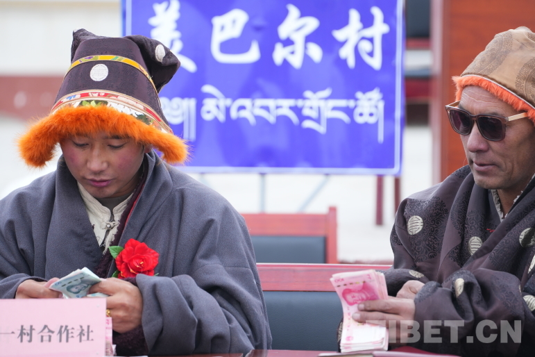 圖為藏比鄉(xiāng)一村合作社正在分紅