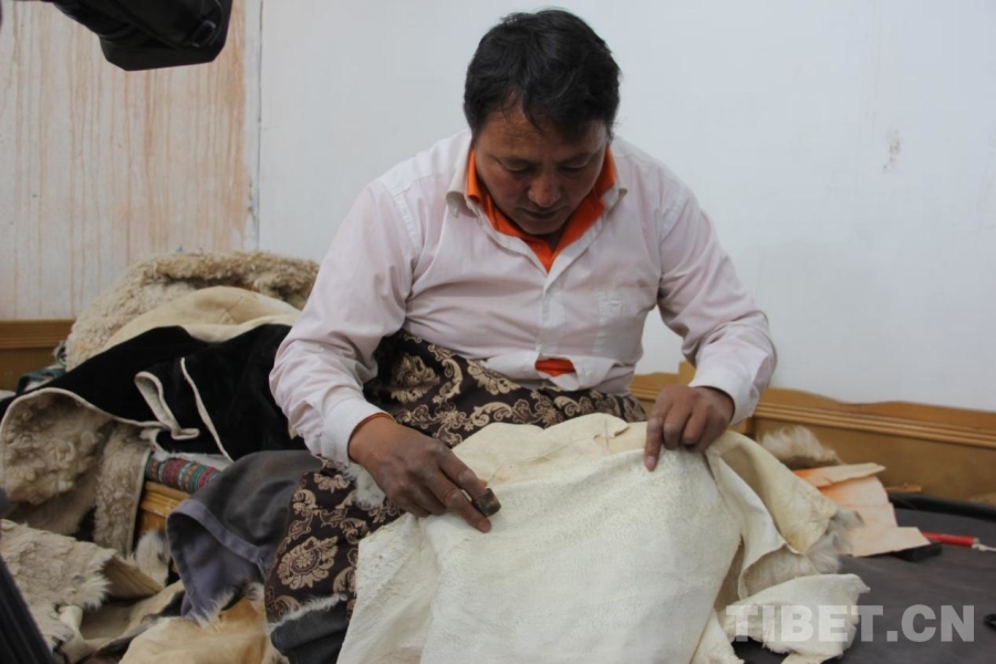 圖為申扎縣牧民縫制皮袍 申扎縣文旅局供圖