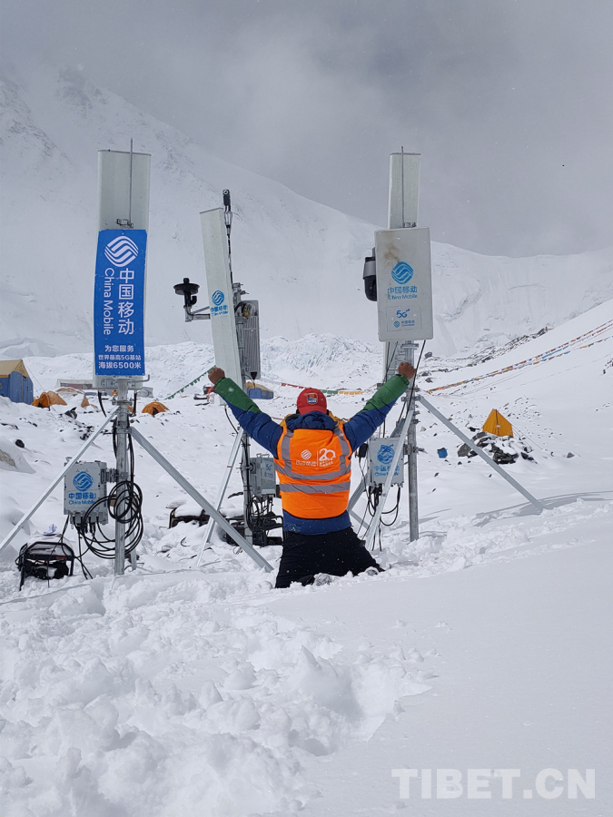 圖為2020年4月全球海拔最高的5G基站投入使用,5G信號首次“登頂”世界之巔,為珠峰高程測量全程提供通信服務。圖片由西藏自治區(qū)通信管理局提供