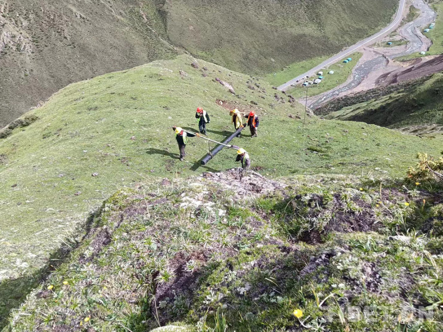 圖為工作人員正在雪域高原架設通信鐵塔?!D片由西藏自治區(qū)通信管理局提供