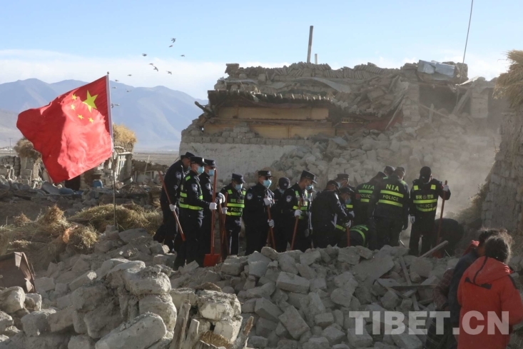 中國西藏網(wǎng)訊 1月7日9時(shí)5分,在西藏日喀則市定日縣措果鄉(xiāng)附近發(fā)生6.8級(jí)地震,震源深度10千米。西藏出入境邊防檢查總站移民管理警察在西藏日喀則市定日縣長所鄉(xiāng)玉白村參與救援及安置工作。五星紅旗之下,是國家對(duì)災(zāi)區(qū)群眾的守護(hù),亦是災(zāi)區(qū)群眾對(duì)黨和國家救援力量的期盼。有五星紅旗的地方就有信念的燈塔,這是災(zāi)區(qū)一線的守望?。ㄖ袊鞑鼐W(wǎng) 通訊員/郭遠(yuǎn)敬)