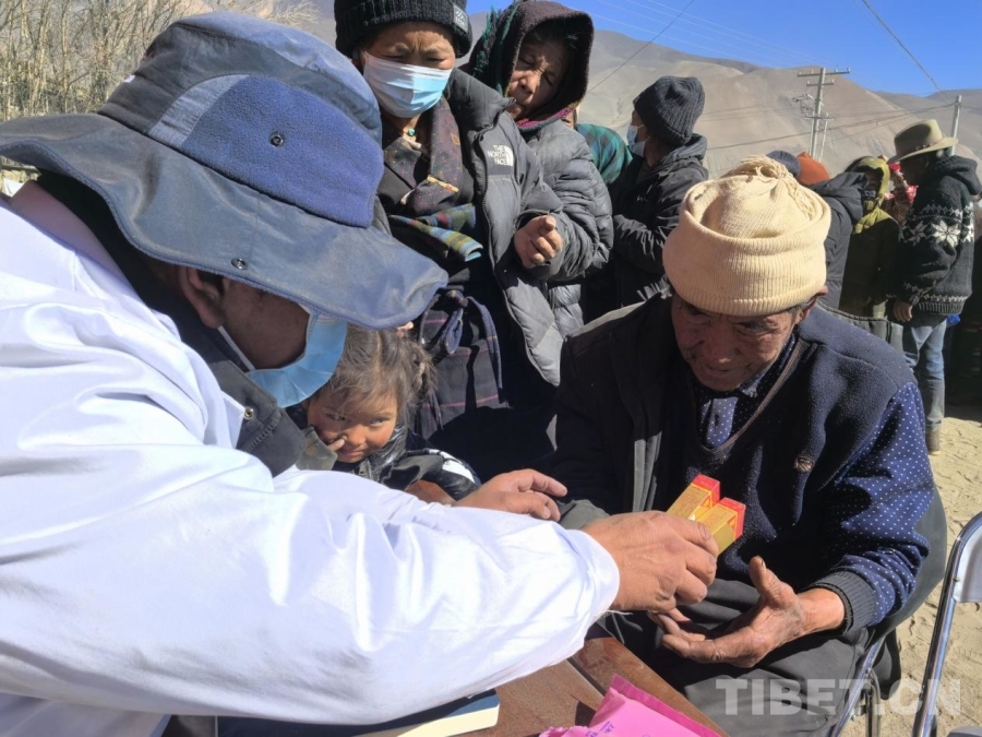 赤列是一位來自西藏自治區(qū)日喀則市的藏醫(yī)。他在當?shù)匦嗅t(yī)多年,熟稔當?shù)胤窖?,熟悉當?shù)厍闆r,地震發(fā)生后,他迅速籌集了一批當?shù)厝罕娂毙璧乃幤?,來到受?zāi)群眾安置點,為大家免費送醫(yī)送藥。