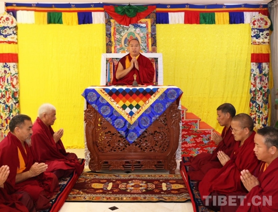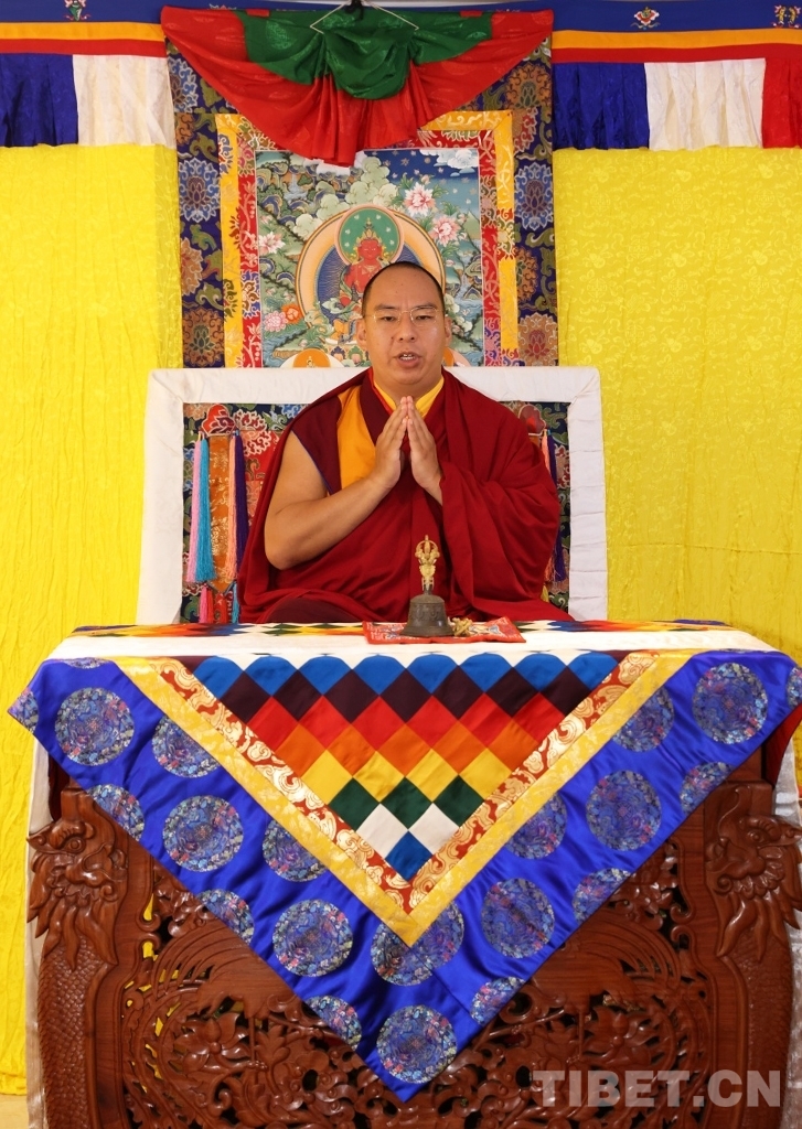 圖為班禪額爾德尼·確吉杰布為定日地震災區(qū)誦經(jīng)祈福