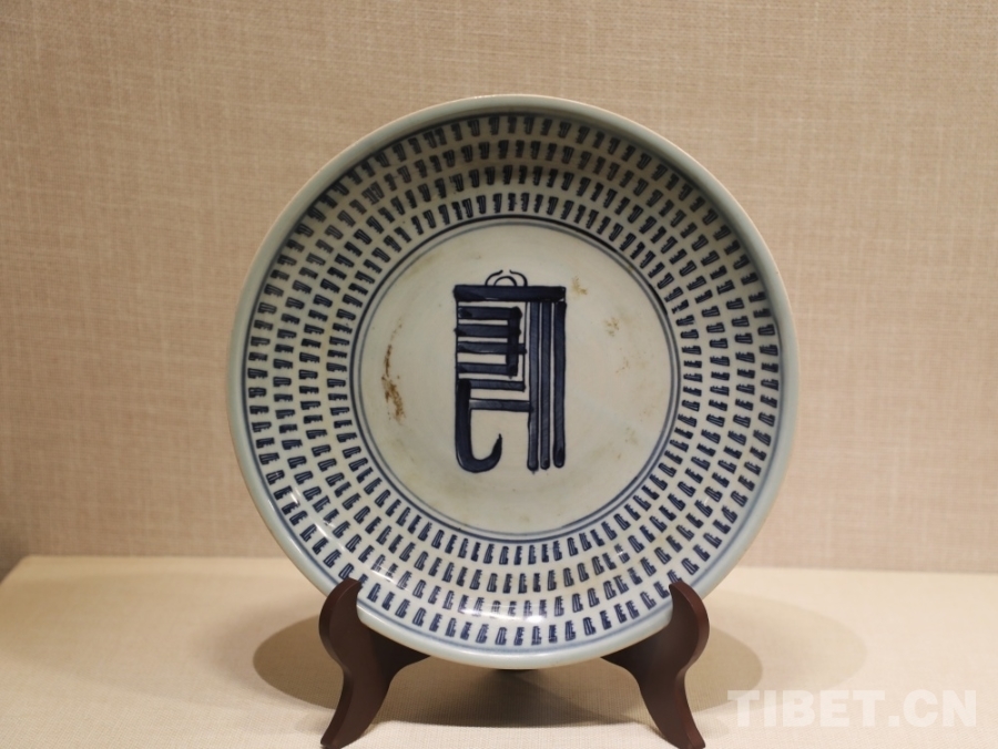 圖為明青花梵文盤(pán) 攝影:王茜
