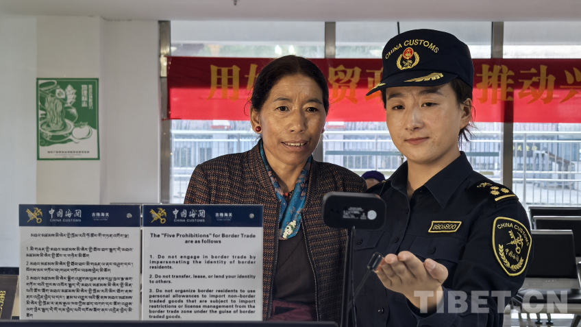 圖為海關(guān)工作人員使用“智能海關(guān)”相關(guān)系統(tǒng)對出入境人員身份信息進行核對 圖片由拉薩海關(guān)提供