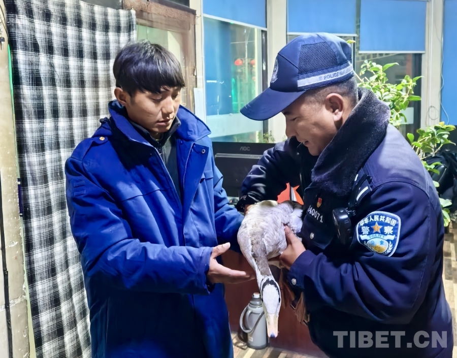 中國(guó)西藏網(wǎng)訊 2月16日下午,西藏日喀則仁布縣公安局強(qiáng)欽街便民警務(wù)站民輔警在開(kāi)展巡邏時(shí),在路邊人行道上發(fā)現(xiàn)一只受傷被困的“大鴨子”,疑似野生保護(hù)動(dòng)物。