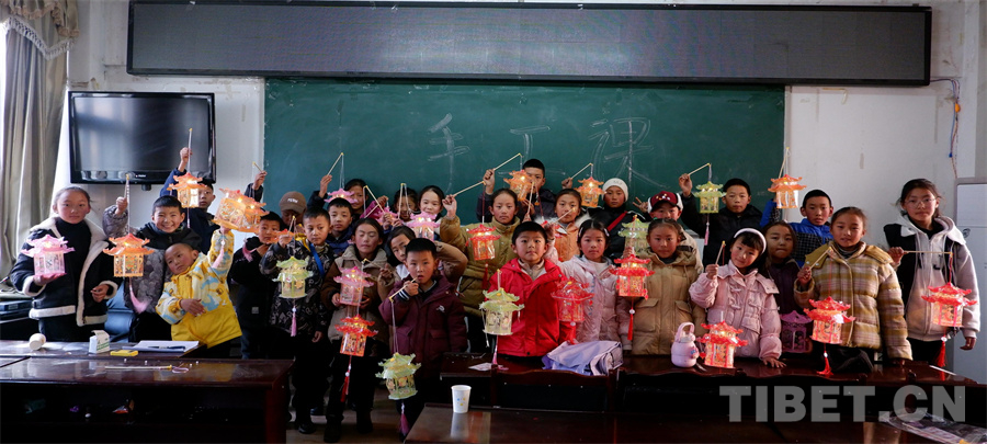 圖為西藏洛隆縣參加“假日托育”志愿服務(wù)活動(dòng)的孩子們展示自己的手工成果
