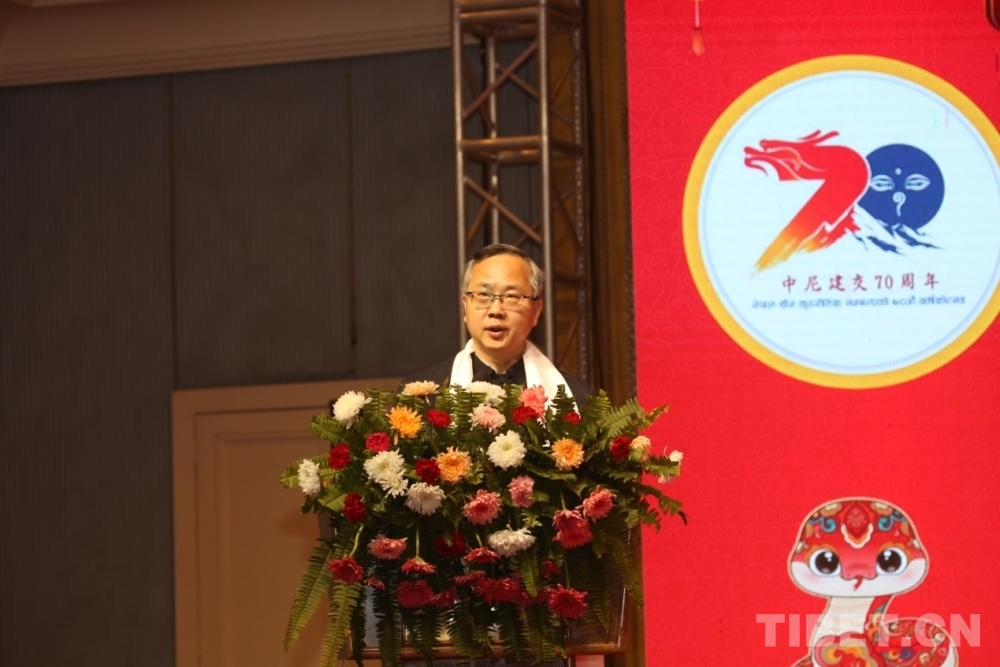 圖為中國(guó)駐尼泊爾大使陳松發(fā)表新年致辭 攝影:蘇尼爾·夏爾馬