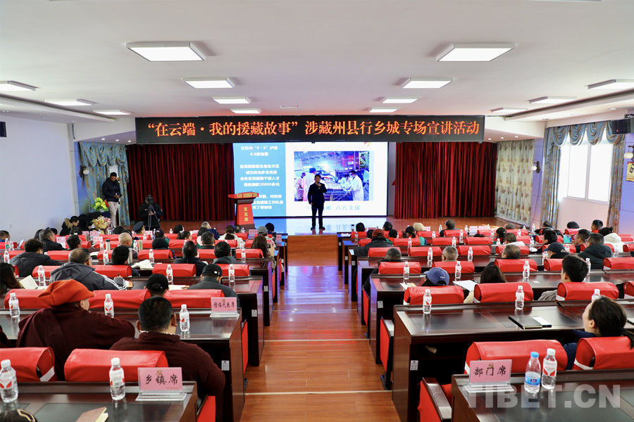 中國西藏網(wǎng)訊 2月27日上午,“在云端·我的援藏故事”涉藏州縣行宣講活動走進(jìn)四川省甘孜藏族自治州鄉(xiāng)城縣。宣講團(tuán)隊(duì)的七位成員以“金牛幫扶聚云端 巾幗情灑扎溪卡”“那片深愛的土地”“愛心支教行,共筑成長夢——為了使命的遠(yuǎn)行”等主題,滿懷深情地向當(dāng)?shù)馗刹咳罕娭v述他們的故事。