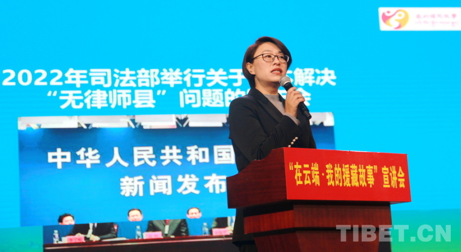 圖為四川盛豪律師事務(wù)所三州分所運(yùn)營(yíng)總監(jiān)馬曉玲講述律師援藏故事 攝影:劉莉