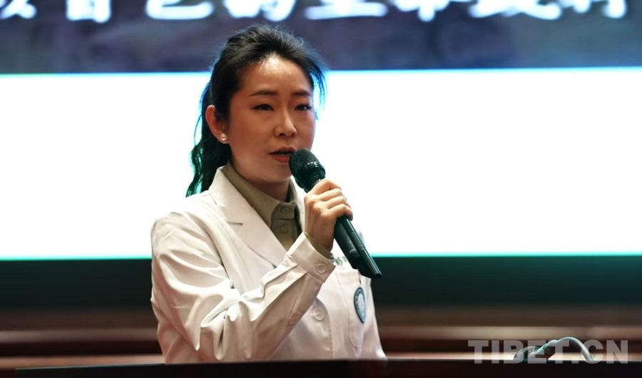 圖為四川省德陽(yáng)市人民醫(yī)院宣傳部干事彭曉萌講述“范天勇援藏醫(yī)療服務(wù)隊(duì)”的援藏故事 攝影:劉莉