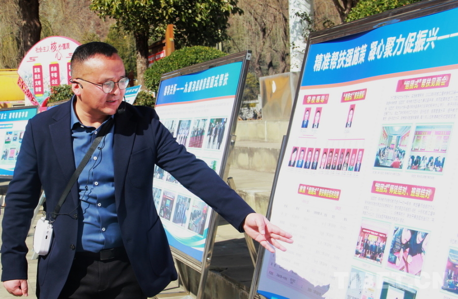 圖為來(lái)自四川省都江堰中學(xué)、現(xiàn)任九寨溝縣中學(xué)校校長(zhǎng)的李智介紹九寨溝縣組團(tuán)式教育援藏成果 攝影:劉莉