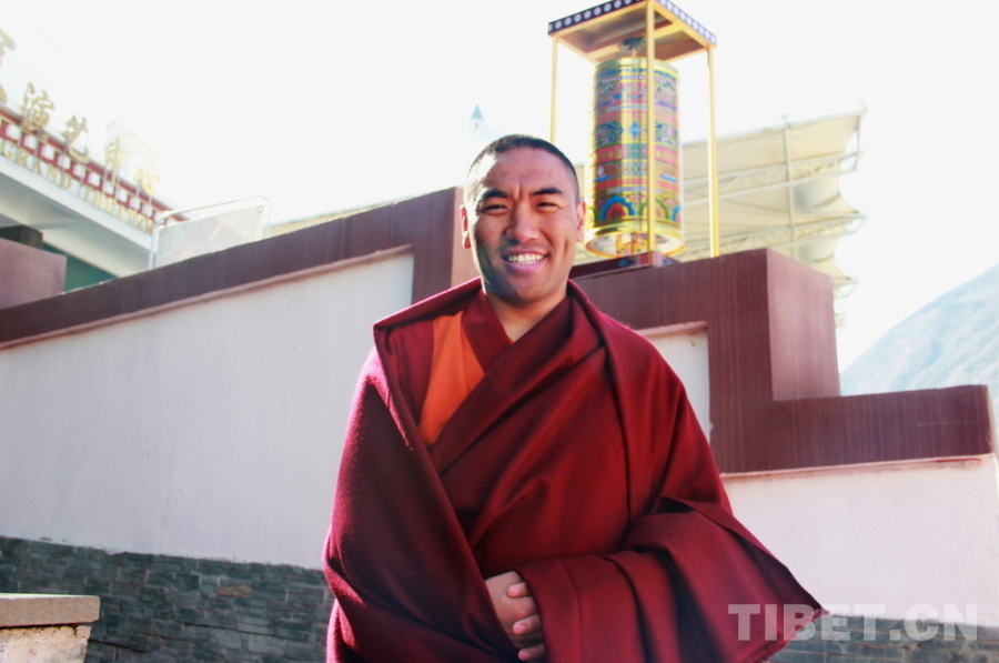 圖為四川省阿壩州九寨溝縣達(dá)吉寺的高級(jí)經(jīng)師、中國(guó)藏語(yǔ)系高級(jí)佛學(xué)院首批“拓然巴”高級(jí)學(xué)銜獲得者之一王杰澤然接受采訪 攝影:張家文