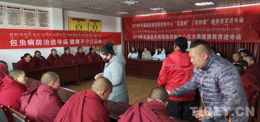 圖為石渠縣疾控中心走進寺廟做傳染病防治宣傳 受訪者供圖