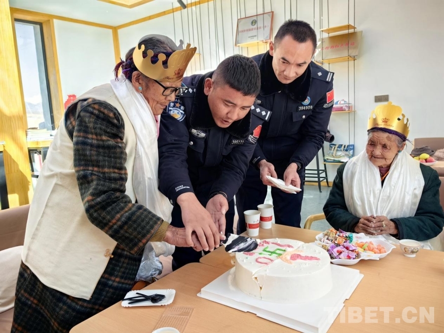活動中,警民攜手為老人們精心準(zhǔn)備了一場慶祝派對,邊防民警、社區(qū)兩委班子成員、駐村工作隊(duì)隊(duì)員為老人獻(xiàn)上祝福的歌曲,定做精美的蛋糕,穿上代表高壽的藏式服裝等,并與老人們嘮家常,傾聽他們的生活故事和需求?!?/span>